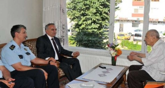 Yüksel ve beraberindeki heyet, 1913 doğumlu 100 yaşındaki emekli polis memuru Ahmet Toksal'ı Fatih Caddesi'ndeki evinde ziyaret ederek elini öptü.
