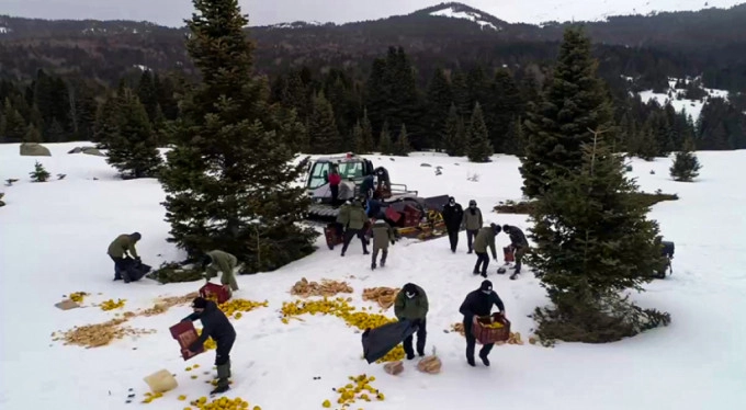 Sebze, meyve ve ekmekten oluşan yemler, 1750 metre rakımlı Çobankaya mevkisinde Gürsu Kaymakamı Naif Yavuz, Doğa Koruma ve Milli Parklar 2. Bölge Müdürü Adil Şencan, Ziraat Odası Başkanı Kamil Dönmez, Avcılık ve Yaban Hayatı Şube Müdürü Hidayet Topcu ve Uludağ Milli Park Müdürü Yüksel Akdoğan'ın katılımıyla, belirlenen yerlere konuldu.