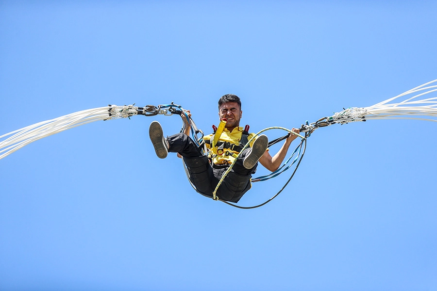 Yerli ve yabancı turistler, yaklaşık iki yıl önce açılan tesiste "zipline", "dev salıncak", "ip parkuru", "zipcoaster", "katapult" ve "tırmanma duvarı" gibi parkurları kullanarak adrenalini zirvede yaşıyor.