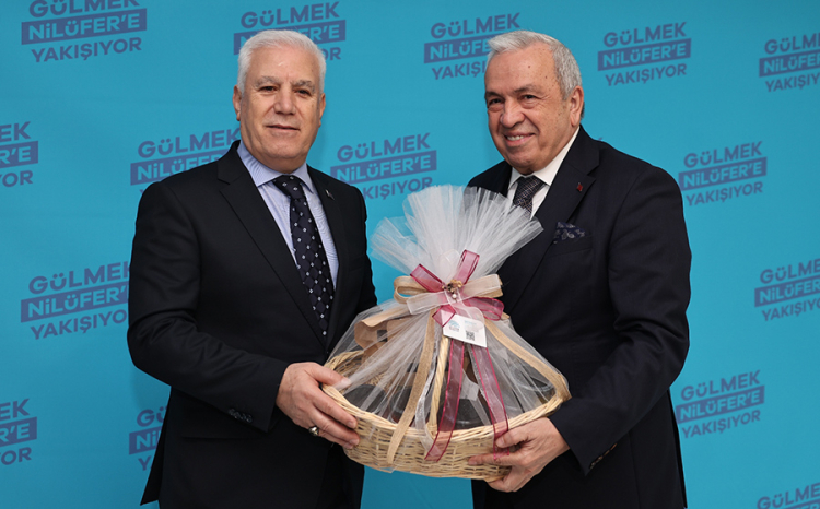 Bursa Büyükşehir Belediye Başkanı Mustafa Bozbey “Başkan Bozbey Burada” programı kapsamında, Nilüfer Belediye Başkanı Şadi Özdemir’i ziyaret etti. Bozbey'in 4 dönem başkanlık yaptığı belediyedeki buluşmaya kalabalık bir ekip eşlik etti.
