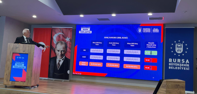 BUSKİ ve Bursa büyükşehir Belediyesi’nin mali tablosunu da paylaşan Başkan Bozbey, Büyükşehir Belediyesi borçlarında mayıs ayı itibariyle yüzde 20 düşüş olduğunu, BUSKİ borçlarında ise yüzde 64 artış olduğunu açıkladı. Genel toplamda borçlanmanın yüzde 16 arttığını anlatan Başkan Bozbey, basın mensuplarının sorularını da yanıtladı.