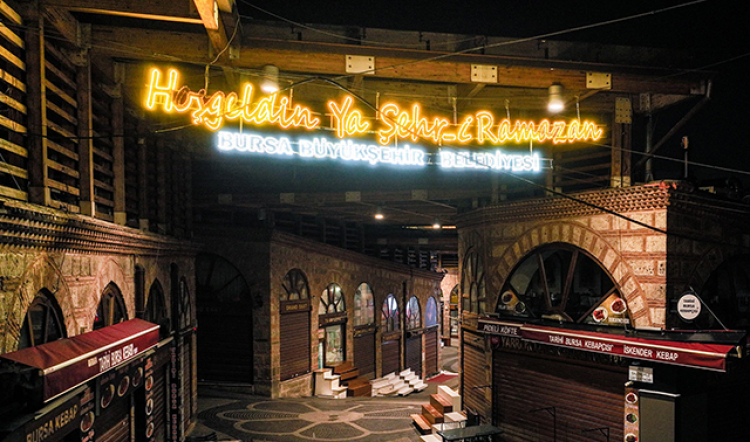 Bursa Büyükşehir Belediyesi, yoğun yaya ve araç trafiğine sahip noktaları Ramazan öncesi özel ışıklandırmalarla süsledi.