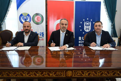 Bursa Büyükşehir Belediyesi ve BUSKİ’de çalışan toplam 444 kadrolu işçiyi ilgilendiren toplu iş sözleşmesi, Büyükşehir Belediyesi ile Hizmet-İş Sendikası arasında imzalandı.
