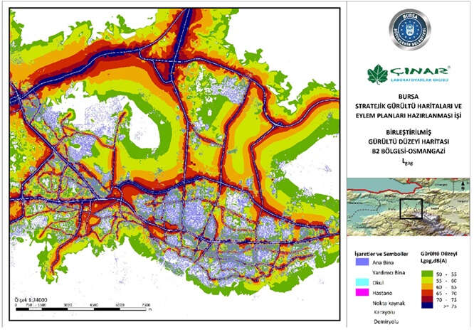 Bursa Büyükşehir Belediyesi, Çevresel Gürültü ve Haritalama Eylem Planı Çalıştayı düzenledi. Bursa Büyükşehir Belediye Başkanı Alinur Aktaş’ın yanı sıra Çevre, Şehircilik ve İklim Değişikliği Bakanlığı Modelleme ve Haritalama Şube Müdürü Nuray Hüsmen’in de katıldığı çalıştayda, bundan sonra izlenecek yol haritası, konunun tüm taraflarınca masaya yatırıldı. Özellikle hastane, okul, konut gibi hassas alanları etkileyen ve 3 milyon 147 bin 818 kişinin gürültüye maruziyetinin değerlendirildiği Stratejik Gürültü Haritaları, Çevre, Şehircilik ve İklim Değişikliği Bakanlığı tarafından daha önce onaylanmıştı.