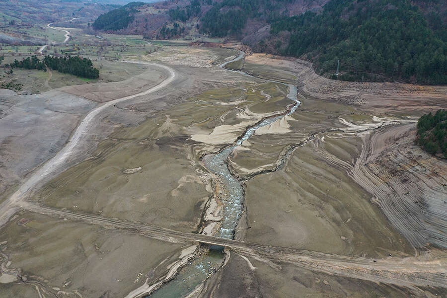 Şubat ayında yapılan ölçümlerde, uzun süredir yağış alamayan barajda su sıfır seviyesine indi.