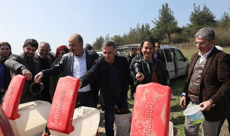 Mudanya Belediyesi'nin ihtiyaç sahibi vatandaşlara dağıtmak üzere üreteceği ayçiçek yağının tohumları toprakla buluştu. Balabancık Mahallesinde belediyeye ait 85 dönüm araziye ekim ayında yine ihtiyaç sahiplerine dağıtılmak üzere karakılçık buğdayı ekilecek.