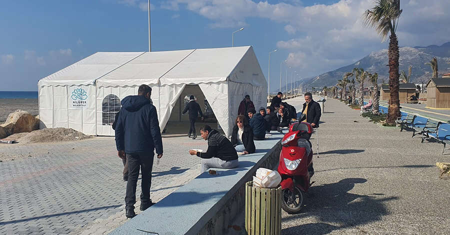 Deprem bölgesinde yaraların sarılması için bütün imkanlarını seferber eden Nilüfer Belediyesi, Hatay Samandağ’da aşevi kurdu. Hatay’da çadırkent kurmak için de harekete geçen Nilüfer Belediyesi, deprem bölgesinden Bursa’ya gelen afetzedelere de hem barınacakları yer buluyor, hem de ihtiyaçları için destekte bulunuyor.