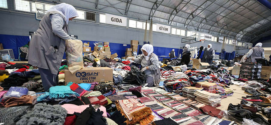 Depremzedelere yardım etmek isteyen Bursalılar’ın yardımları Üçevler Spor Tesisleri’ndeki alanda toplanmaya devam ediliyor. Bursa’ya gelen afetzedeler giysi ve erzak ihtiyaçlarını yine Üçevler Spor Tesisleri’ndeki merkezden karşılayabiliyor.