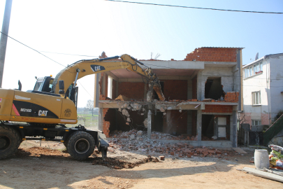 Nilüfer’de 2 katlı kaçak bina yıkıldı