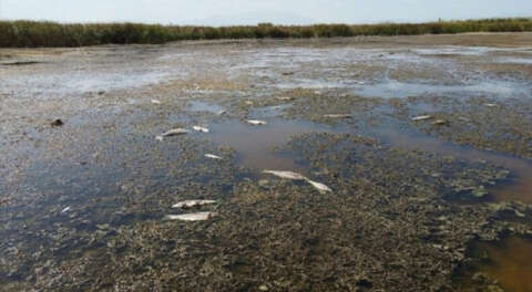 Kuruyan alanda 2-3 kilogram ağırlığa sahip onlarca balık ölüsü görülürken, sığlaşan kesimlerde sıkışan küçük balıklar balıkçıllara yem olmaya başladı.