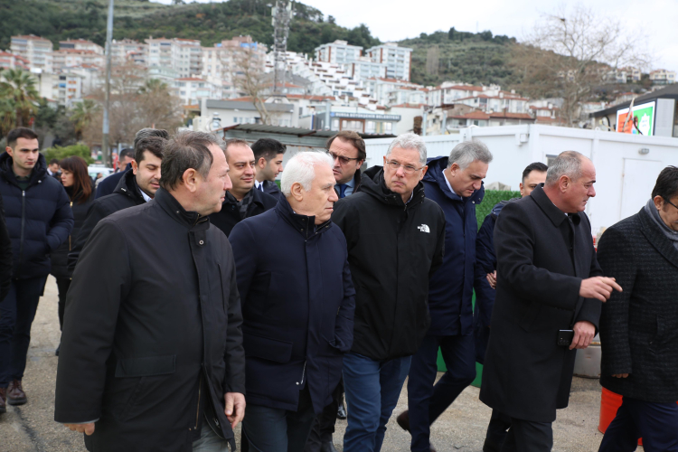 Bozbey Gemlik'te müsilajın yüzeye çıktığı bölgede inceleme yaptı