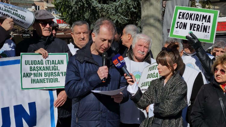 Bursa Su Kolektifi, ormanlık alanların Cumhurbaşkanı kararı ile ormanlık vasfından çıkarılmasını ve ormanlık alanlarda maden ocağı işletmelerine izin verilmesini basın açıklamasıyla protesto etti.