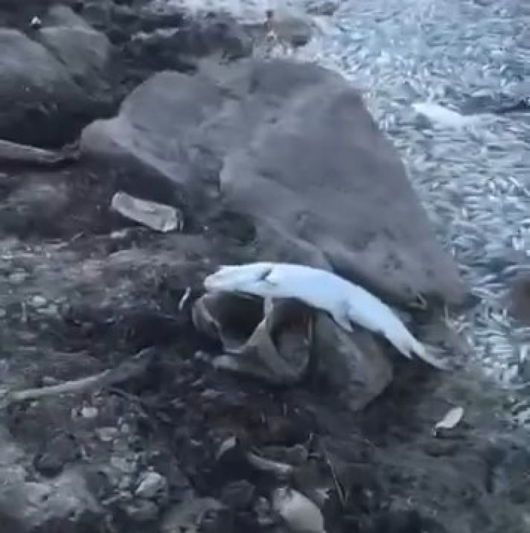 Göletin kıyısındaki acı tabloyu bir vatandaş cep telefonu kamerasıyla kaydederek sosyal medyada paylaştı.