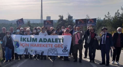 Basın açıklamasının ardından çevreciler, termik santrali protesto etmek amacıyla yürüyüş gerçekleştirdi.