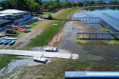 İznik Gölü'nde korkutan görüntü; En büyük iskele karaya oturdu