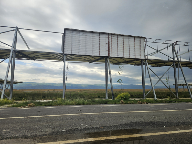 (Göl kıyısına yapılan stadyumun panelleri bakımsız nedeniyle rüzgarda uçtu, direkleri devrildi)