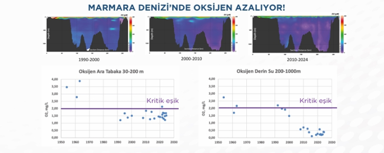 Marmara Denizi'ndeki oksijen seviyesinin yıllar içinde nasıl azaldığına dair grafik.
