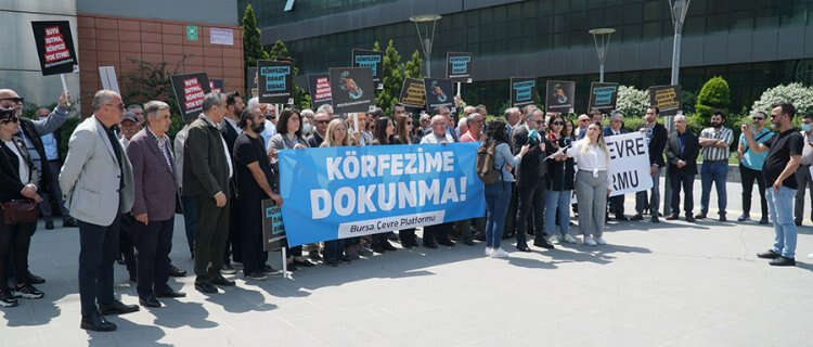Davacılar ve akademik meslek odalarının temsilcileriyle Bursa milletvekilleri Nurhayat Altaca Kayışoğlu, Erkan Aydın ve Yüksel Özkan’ın da katıldığı basın açıklaması BAOB Demokrasi Meydanı’nda yapıldı. Basın açıklamasını okuyan Bursa Barosu Başkanı Av. Metin Öztosun, “Marmara Denizi can çekişiyor, felaket müsilajla su üstüne çıktı, kıyıları kapladı ve aylarca içimiz acıyarak izledik. Bu acı tabloya rağmen önlem alması gerekenler, aksine girişimlerle Marmara Denizi’ne bir hançer daha saplamak için çalışıyorlar” dedi.