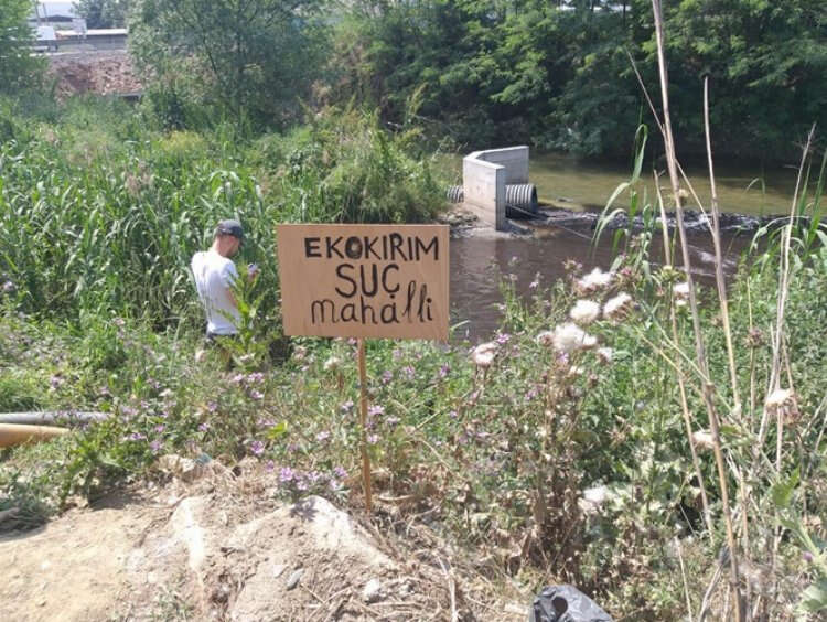 Kervan’ın Bursa’daki ikinci durağı, Samanlı Mevkii’nde Uludağ’dan gelen temiz suyun ve fabrikaların atıklarından çıkan kirli suyun birleştiği nokta olan Deliçay oldu. Kirli su kaynaklarına “Ekokırım suç mahalli” tabelası bırakıldı.