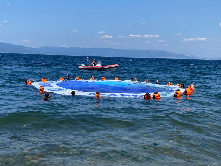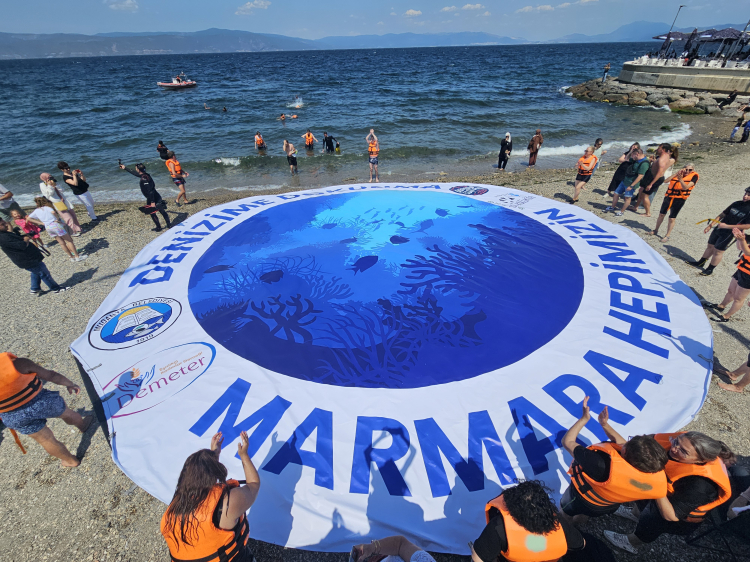 Mudanya'da Mudanya Belediyesi, Demeter Eşitlikçi Kadınlar Derneği, Bursa Su Kolektifi ve Değişim Elçileri'nin iş birliğiyle müsilaja dikkat çekmek için Mütareke Meydanı'nda 'Denizime Dokunma' başlığıyla eylem ve basın açıklaması gerçekleştirildi.