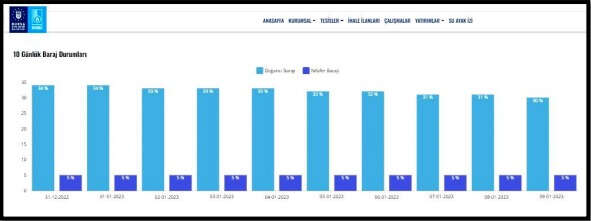 Barajlardaki doluluk oranlarına bakıldığında ise ortalamanın yüzde 28,6 altında kurak bir sonbahar gerçekleşmektedir. İstanbul'un aktif doluluk oranının geçen yıl aynı tarihten yüzde 7 daha az olduğu tespit edilirken, barajlara hiç su gelmemesi halinde ilin yaklaşık 4 aylık içme suyu ihtiyacının karşılanabilme kapasitesi bulunuyor. Ankara'nın aktif doluluk oranının geçen yılın aynı dönemine göre yüzde 12,1 daha fazla olduğu belirlendi. Barajlara hiç su gelmemesi halinde Ankara'da yaklaşık 8 aylık içme suyu ihtiyacının karşılanabilme kapasitesi var. İzmir'in aktif doluluk oranı ise geçen yıl aynı tarihten yüzde 2,4 daha az seviyede bulunuyor. Barajların yanında yeraltı suyu kuyuları ile içme suyuna takviye yapılıyor. Şehrin, barajlara hiç su gelmemesi halinde 7 aydan fazla içme suyunu karşılayabilme kapasitesi bulunuyor.