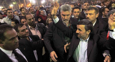 Kahire'deki Hz. Hüseyin camisinde akşam ve yatsı namazlarını kıldıktan sonra halkla selamlaşan İran Cumhurbaşkanı Mahmud Ahmedinejad'a Suriyeli bir genç ayakkabı fırlattı.