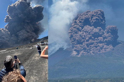 İtalya'daki Etna Yanardağı'nda turistlerin olduğu sırada patlama meydana geldi. Turistlerin korku ve panikle bölgeden kaçtığı anlar kameralara yansıdı.