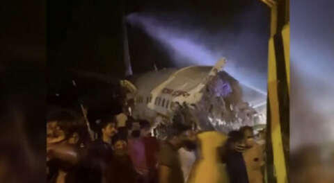 Hindistan'ın Kerala eyaletinde Air India Express şirketine ait içinde 184 yolcu ve 7 mürettebatın bulunduğu uçak, iniş sırasında pistin dışına çıkarak ikiye bölündü.