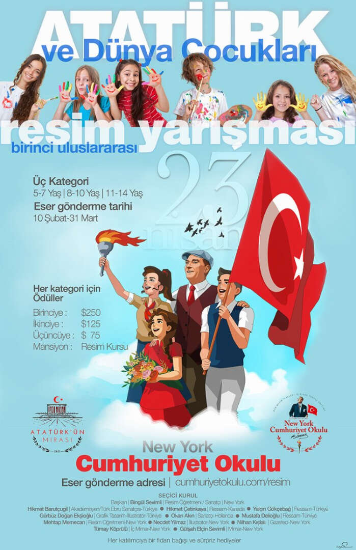 New York Cumhuriyet Okulu, 23 Nisan Ulusal Egemenlik ve Çocuk Bayramı nedeniyle "Atatürk ve Dünya Çocukları" adıyla uluslararası resim yarışması düzenledi.
