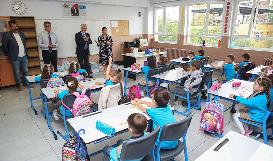 Yeni eğitim-öğretim yılının başlamasıyla birlikte öğrenciler okulda ilk gün heyecanı yaşadı. Nilüfer Belediye Başkanı Turgay Erdem de, okula yeni başlayan minik öğrencileri sınıflarında ziyaret ederek, heyecanlarına ortak oldu. İlk ders zilinin çalmasının ardından Gölyazı Ünallar İlkokulu ile ziyaretlerine başlayan Erdem, ardından Akçalar Fahriye Sayarel İlkokulu ve Hasanağa İlkokulu’na giderek öğrencilerle buluştu. Öğrenci ve öğretmenlere yeni eğitim ve öğretim dönemi için iyi dileklerini ileten Turgay Erdem, öğrencilere içinde kalem, kalemtraş, silgi, renkli boya kalemleri gibi kırtasiye malzemeleri bulunan “İklim Yılı” temalı kalemlik seti hediye etti.