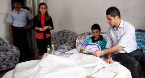 İl Milli Eğitim Müdürlüğünden görevliler, Fidyekızık Mahallesi'ndeki eve gelerek Ahmet Erim'e sınav evraklarını teslim etti. Hasta yatağında sınava giren 14 yaşındaki öğrencinin mutluluğu ise gözlerinden okundu.