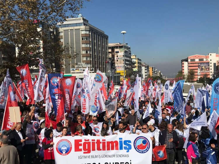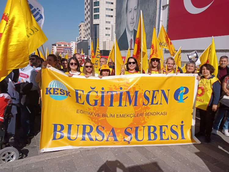 Eğitim-İş Bursa Şube Başkanı Yeliz Toy, Eğitim-İş’in çağrısı ve bu çağrıya yanıt veren eğitim sendikalarıyla birlikte, Türkiye sendikal mücadele tarihinde neredeyse benzeri olmayan bir ortak duruş birlikteliği oluşturulduğunu söyledi. Toy, 14 eğitim sendikasının üretimden gelen gücünü kullanarak, iş bırakarak kararlılığını gösterdiğini vurguladı. Toy, "Tarih, eğitim emekçilerinden, çocuklarımızın geleceğinden ve nitelikli eğitim hakkından yana olanları mutlaka yazacaktır. Emeğimize, alın terimize ve mesleki itibarımıza saldıranlar ile çocuklarımızın nitelikli eğitim hakkını gasp edenler ise tarihle yargılanacaktır" ifadelerini kullandı.