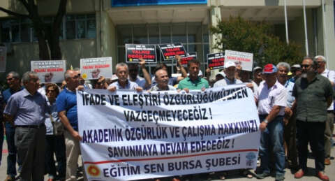 ''Üniversitemizi muhbirliğe, baskıya ve hukuksuzluğa teslim etmeyeceğiz'' diyen Eğitim Sen Bursa Şubesi, 24 Haziran 2016 tarihinde düşünce ve ifade özgürlü için Uludağ Üniversitesi Rektörlük binası önünde basın açıklaması gerçekleştirmişti.