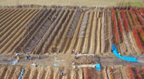 Bursa'nın İnegöl İlçesinde, 9 ülkeye ihraç edilen fidan ve çöğür hasadı yapılıyor.