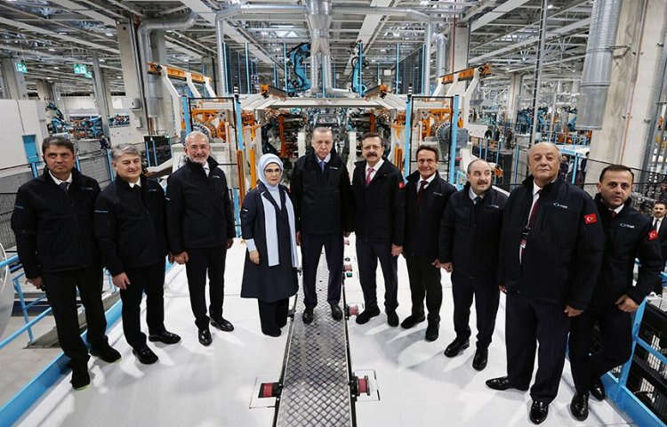 Togg'un seri üretiminin yapılacağı Gemlik Kampüsü'nü gezen Cumhurbaşkanı Erdoğan ve eşi Emine Erdoğan, ziyaret sırasında "5 Babayiğit" ve 1500 fabrika işçisiyle fotoğraf çektirdi.