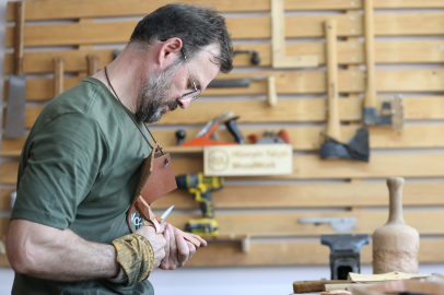 Doğu Karadeniz'de doğup büyüyen, çocukluğunda ve gençliğinde babasının yanında her türlü işte çalışarak tecrübe edinen 50 yaşındaki Yalçın, arkadaşlarıyla gittiği bir kampta ahşap oymacılığa yatkınlığını fark etti.