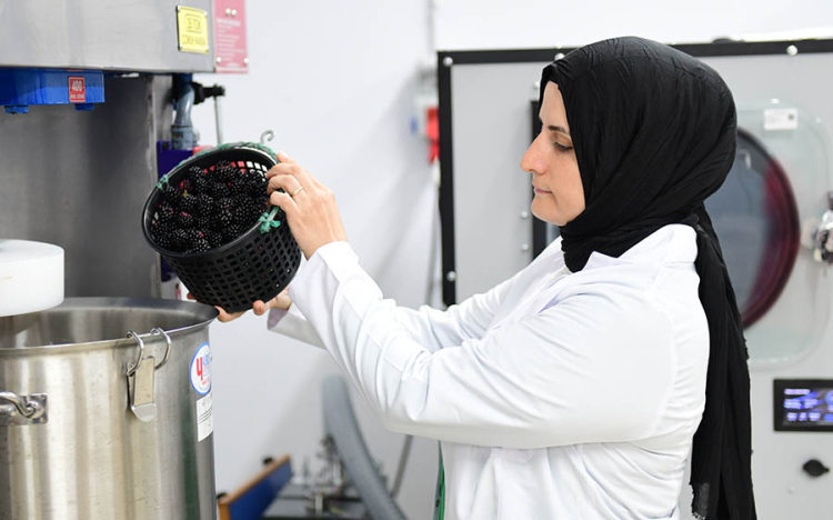 "Ahududuyu tarladan topluyoruz. Ahududuyu dondurarak kurutan bir makinemiz var. Kurutulmuş ve çok uzun ömürlü bir meyve kurusu elde ediyoruz. Aynı zamanda yine ahududu ve böğürtleninin suyunu çıkarabildiğimiz meyve suyu presimiz var. Şişeleme makinelerimiz, meyve suyunu şekerleme ve dinlendirme tankımız var. Ürettiğimiz meyve sularını pastörize edebildiğimiz makinemiz var. Yine aynı zamanda köyümüzde çok fazla mısır üretimi olduğu için mısır ununu üretebileceğimiz bir makine var. Pişirme atölyemizde de bir mutfakta ihtiyaç duyabileceğimiz her türlü ekipmanı edindik. Depomuzdaki raflar, ürünlerimizi paketleyebileceğimiz şişelerimiz, kapaklarımız, her şeyimiz proje kapsamında sağlandı."