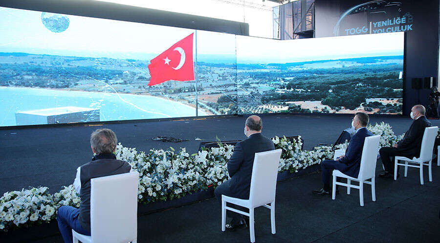 Türkiye'nin Otomobili'nin üretileceği TOGG Mühendislik, Tasarım ve Üretim Tesisleri'nin temeli Cumhurbaşkanı Recep Tayyip Erdoğan'ın da katıldığı törenle atıldı. Bursa'nın Gemlik ilçesindeki Askeri Hara bölgesine yapılacak fabrikanın temel atma törenine TBMM Başkanı Mustafa Şentop, Sanayi veTeknoloji Bakanı Mustafa Varank, Milli Savunma Bakanı Hulusi Akar, Ulaştırma ve Altyapı Bakanı Adil Karaismailoğlu, TOGG Ceo'su Gürcan Karakaş ve Türkiye Odalar ve Borsalar Birliği Başkanı Rifat Hisarcıklıoğlu da katıldı.