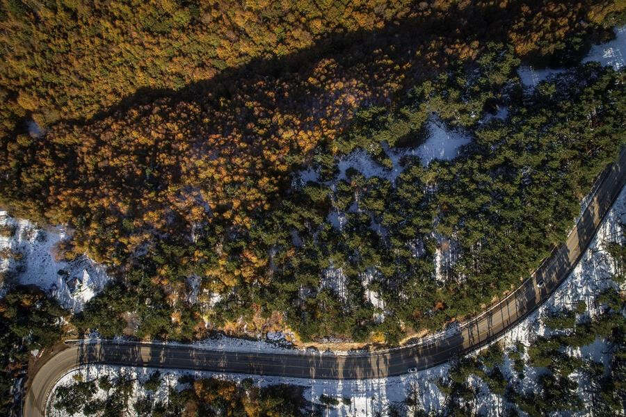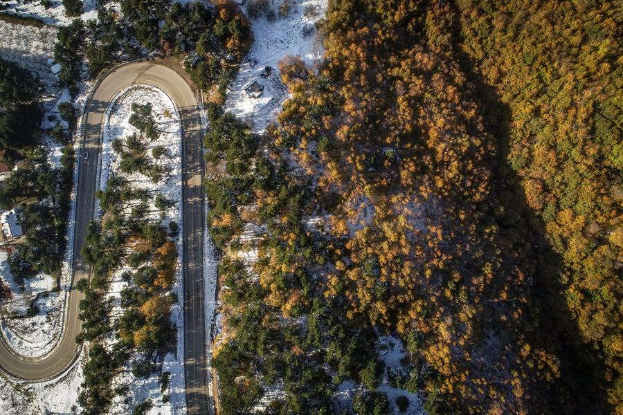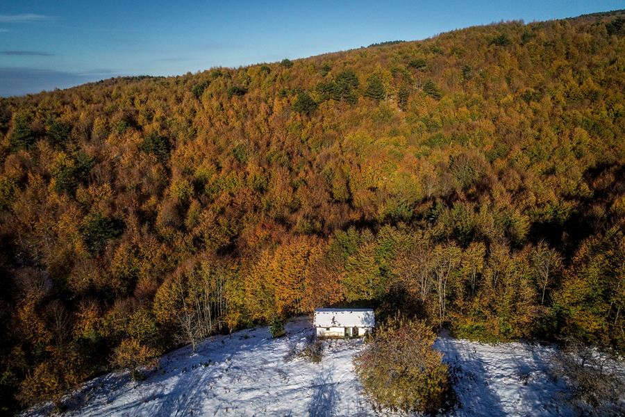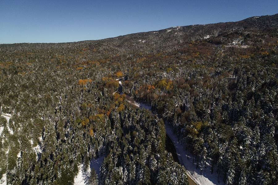 Türkiye'nin önemli kış turizm merkezlerinden Uludağ'da, "oteller bölgesi"ne mevsimin ilk karının düşmesiyle sonbahar ve kış mevsimleri bir arada yaşanıyor.