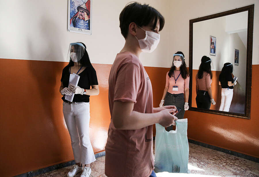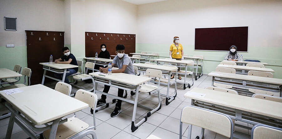 8. Sınıf öğrencilerinin heyecanla beklediği Liselere Geçiş Sınavı (LGS) koronavirüs gölgesinde gerçekleştirildi. LGS'de yeni tip koronavirüs (Kovid-19) tedbirleri kapsamında sosyal mesafeyi sağlayabilmek için okullarda güvenli alanlar oluşturuldu, sınav binaları detaylı olarak temizlendi ve sınıflar dezenfekte edilerek hijyen sağlandı.