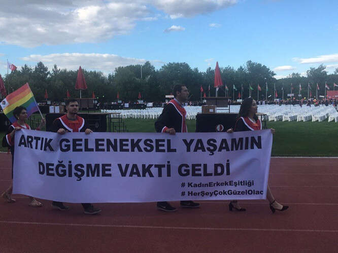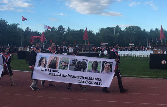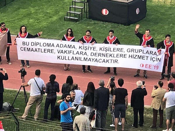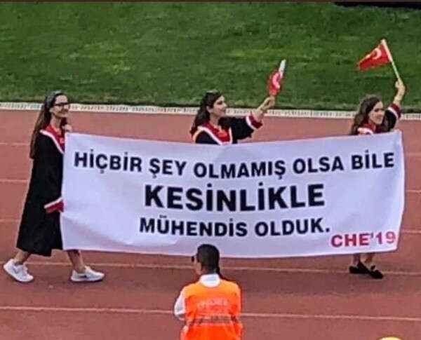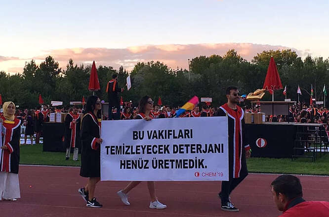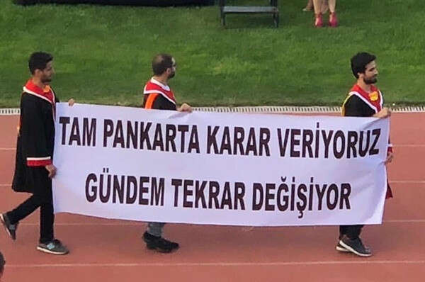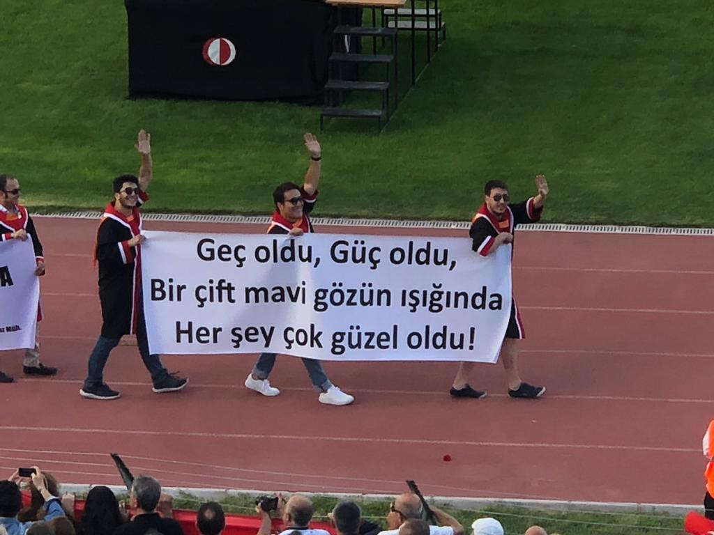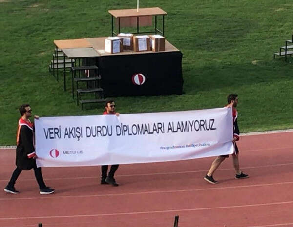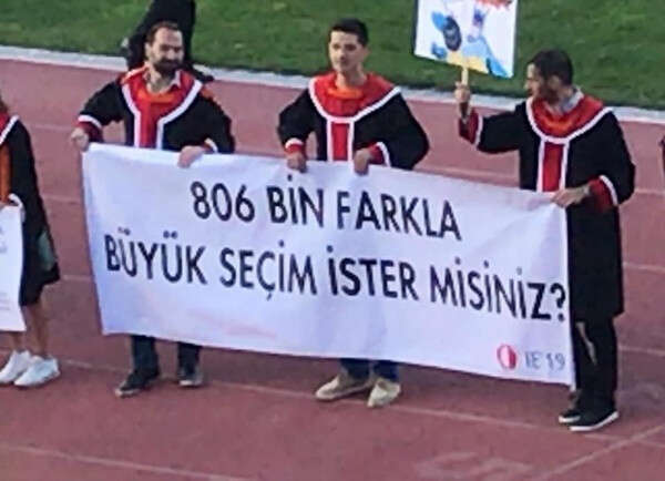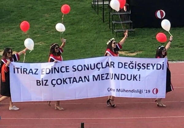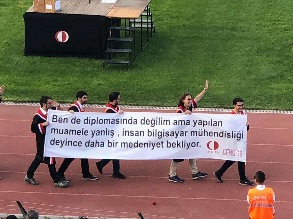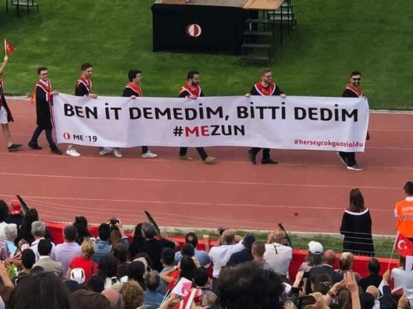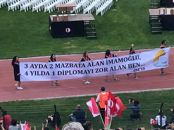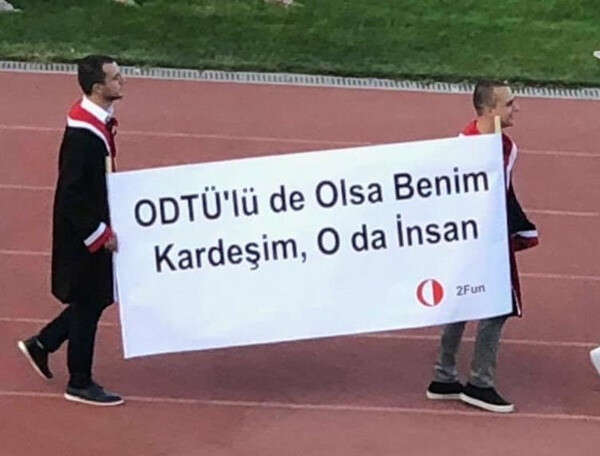 Orta Doğu Teknik Üniversitesi (ODTÜ) öğrencilerinin 2019 mezuniyet törenine bu yıl da hazırladıkları pankartlar damga vurdu. Mezuniyet töreninde İstanbul seçimlerine gönderme yapan pankartlar dikkat çekti.
