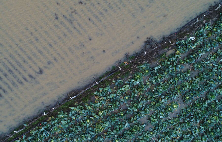 Bursa'nın Karacabey ilçesinde, bakır kabloları çalınan tahliye pompaları devre dışı kalınca şiddetli yağış nedeniyle taşan derenin suları binlerce dönüm ekili tarım arazisini sular altında bıraktı