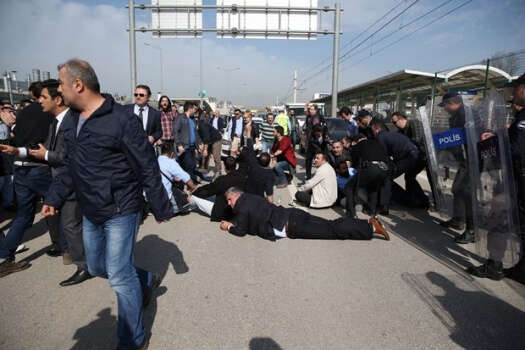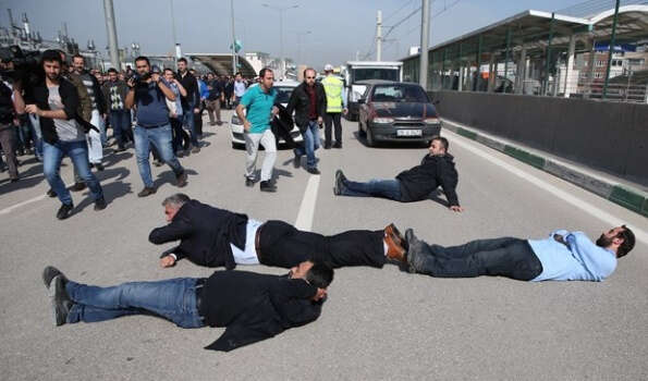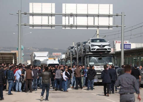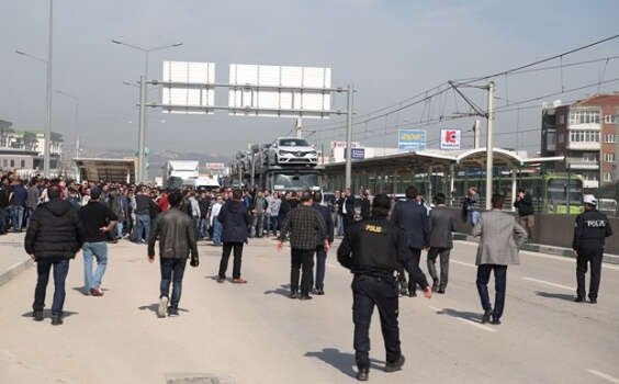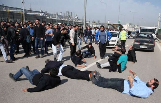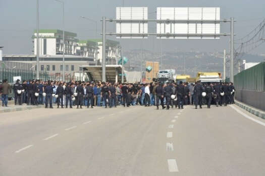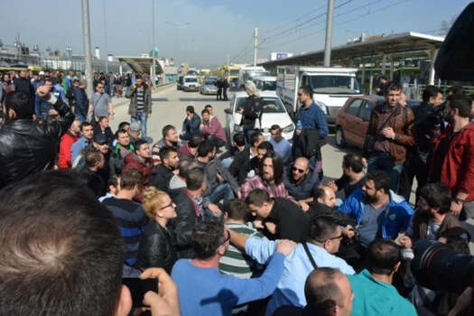 Renault işçileri Bursa-Mudanya yolunda yere yatarak yolu bir süre trafiğe kapadılar