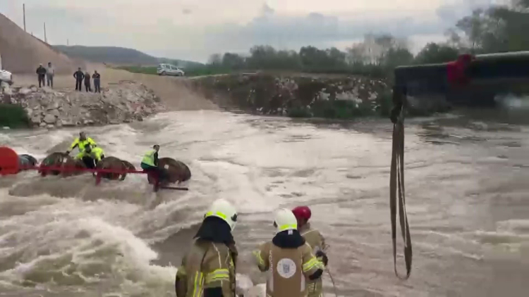 Ekipler, suyun debisi ve zemin şartlarının zorluğu nedeniyle kurtarma çalışmalarını kontrollü şekilde yürüttü.