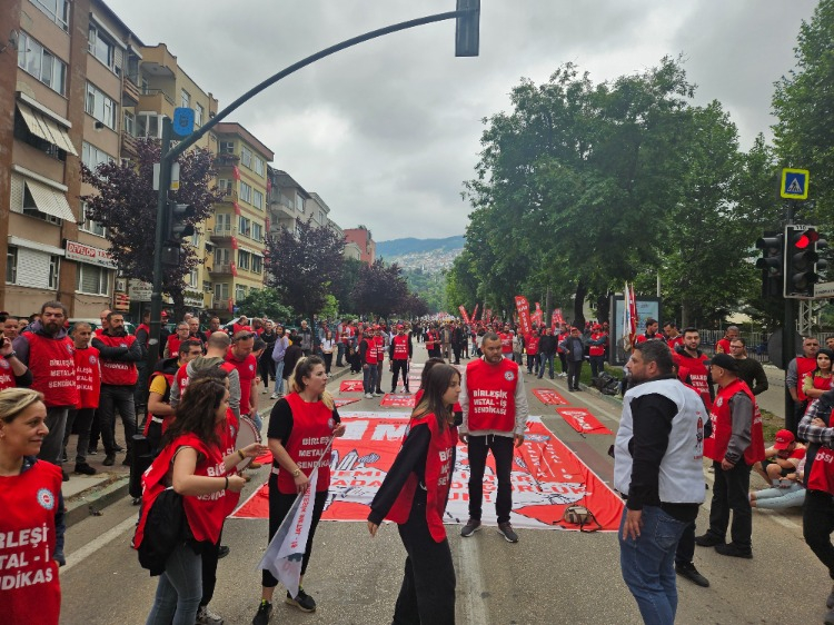 Bursa'da 1 Mayıs Emek ve Dayanışma Günü DİSK, KESK, akademik odalar, siyasi partiler ve derneklerin katılımıyla yürüyüş ve halaylarla kutlandı. Kortej, saat 14.30'da Kültürpark eski Atatürk Stadyumu önünden başlayan yürüyüşünü Kent Meydanı alanında tamamladı.
