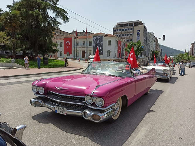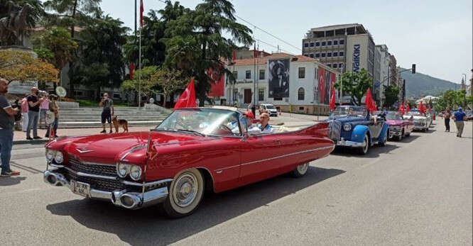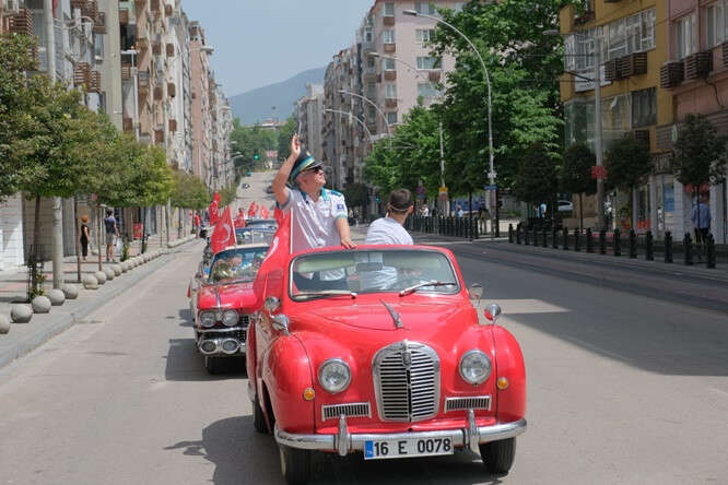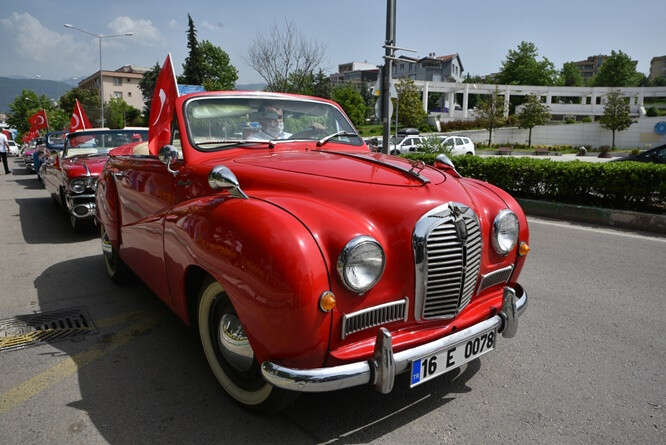 Bursa'da, 19 Mayıs Atatürk'ü Anma, Gençlik ve Spor Bayramı dolayısıyla klasik araçlar konvoy halinde şehir turu attı. Bursa Büyükşehir Belediyesinden yapılan açıklamaya göre, Türk bayraklarıyla donatılmış 12 klasik araç, kentin çeşitli noktalarını dolaştı.
