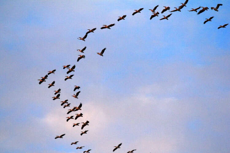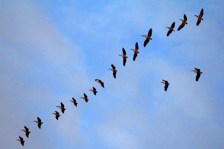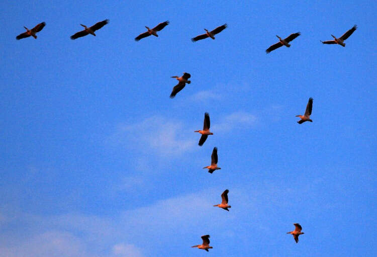 Ege bölgesi ve sulak alanlara doğru göç eden pelikan sürüsü, Bursa'nın üzerinden geçti. Sulak alanları ve zengin beslenme alanlarıyla göçmen kuşların önemli barınma ve üreme alanlarından olan Türkiye, havaların ısınmasıyla farklı türlerde kanatlı misafirlerini ağırlamaya başladı. Göçlerini sürü halinde yapan birbirinden renkli göçmen kuşlar gökyüzünü renklendirirken, simetrik düzende uçmaları da dikkati çekiyor.