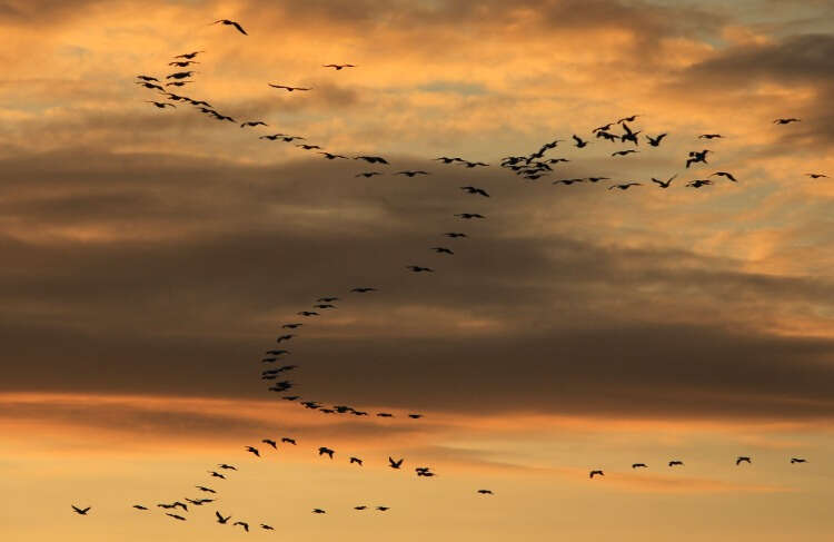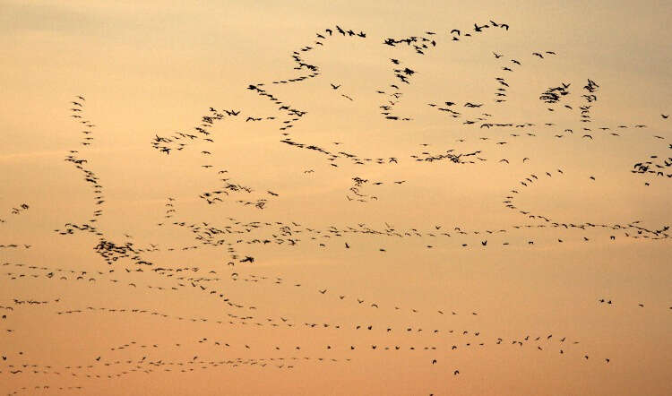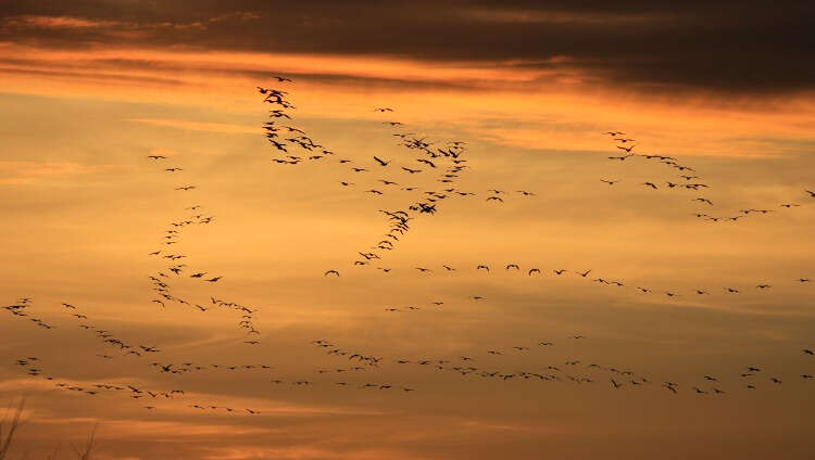 Göçlerini sürü halinde yapan birbirinden renkli göçmen kuşlar gökyüzünü renklendirirken, simetrik düzende uçmaları da dikkati çekiyor.