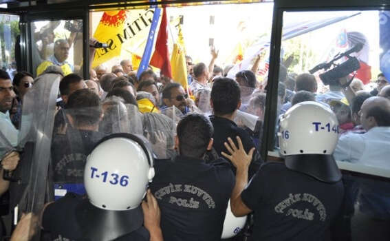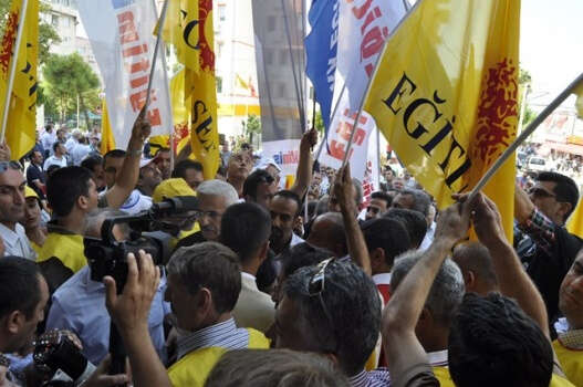 Bursa`da 482 okul müdürünün 286`sının yerinin değiştirilmesini protesto etmek için toplanan yaklaşık 500 kişilik grup, slogan atarak, İl Milli Eğitim Müdürlüğü Binası`na kadar yürüdü.