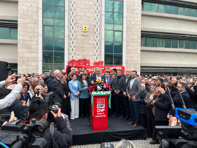 CHP Bursa Milletvekillerinden de benzer çağrılar gelirken, partililer belediye binası önünde toplandı.